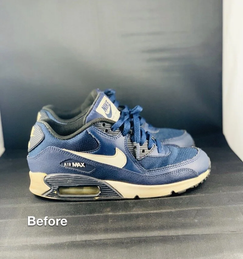 Cleaning services include washing exterior and interior. clean soles, laces, and grooves.